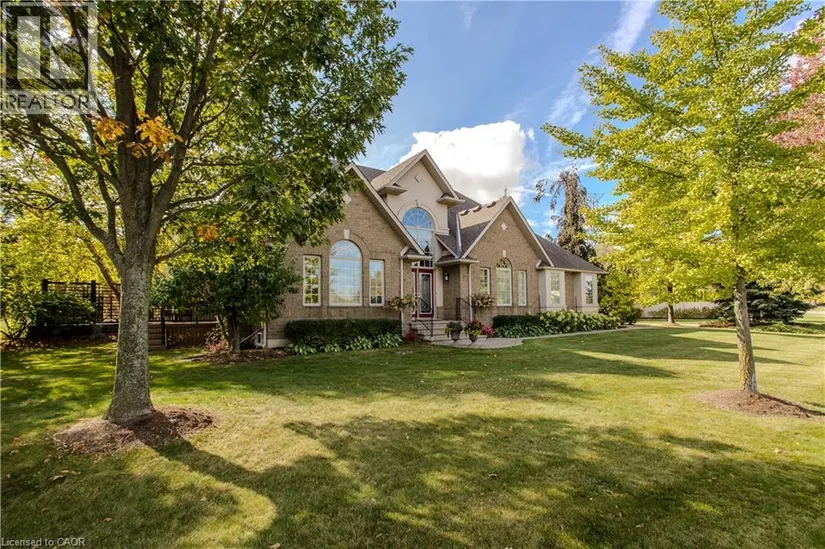 Welcome to a rare offering in the heart of Ancaster—an impeccable bungaloft perfectly positioned on a premium corner lot, backing onto a ravine with no rear neighbours. Offering 3174sf of living space, this meticulously maintained home delivers the ideal blend of elegance, functionality, and privacy for growing families seeking both space and serenity. Perfect for bird/animal lovers, with sightings of deer, turkey and various wildlife at your doorstep. Professional landscaping and interlock walkway set the tone for what’s found within. Step into a main floor designed for effortless living. The living room features soaring vaulted ceilings, large sunlit windows, and a gas fireplace with stone surround and timeless mantle, creating a welcoming space for family gatherings. The generous eat-in kitchen offers abundant cabinetry, undermount lighting, large peninsula w/ breakfast bar, and access to the rear deck—ideal for indoor-outdoor entertaining. A formal dining room with rich hardwood flooring provides a refined setting for family meals and celebrations. The main floor primary suite offers the luxury of single-level living, with dual closets and a 4pc ensuite featuring a dual-sink vanity and walk-in shower. A convenient powder room and main floor laundry add everyday ease. Upstairs, the spacious loft level is perfect for children or guests, offering a cozy sitting area and two well-sized bedrooms, both with ensuite privileges to a shared 6pc bathroom—ensuring smooth morning routines and personal comfort. The fully finished lower level expands the home’s versatility with an oversized recreation room, ideal for a games room, media lounge, or teen retreat, complemented by an additional 3pc bathroom. Outside, the backyard retreat is a serene escape, backing onto mature trees and a tranquil ravine, with a wooden deck and ample green space for children to play and families to unwind. A rare combination of size, privacy and lifestyle in an unbeatable Ancaster location. (id:7434)