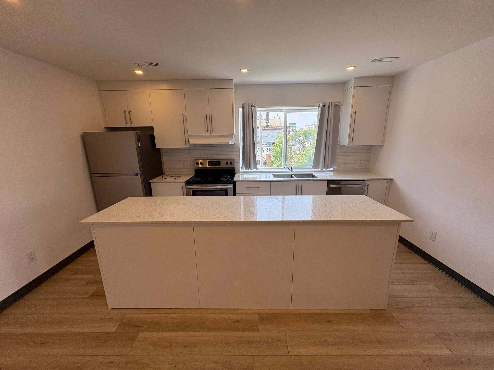 Bright & Stylish 2-bedroom Apartment On The Danforth! Featuring Newer Stainless Steel Appliances, A Large Kitchen Island With Quartz Countertop, Tile Backsplash, And Double Sink. The Open-concept Layout Is Filled With Natural Light, With Large Windows In Every Room And Laminate Flooring Throughout. Enjoy Double Closets For Ample Storage And The Convenience Of Your Own Private Laundry. Just Steps To The Ttc, Restaurants, Cafes, And Shopping - Everything You Need Is At Your Doorstep. Not To Be Missed!
