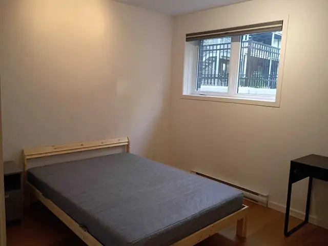 Furnished bedroom (bed, mattress, nightstand, and wardrobe); desk to be added shortly