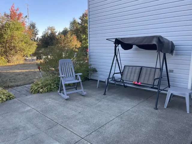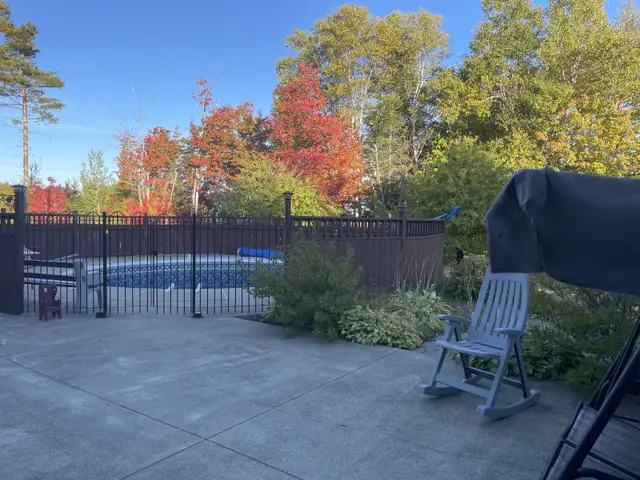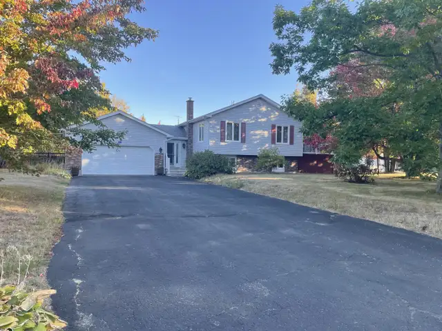 3116 square feet house in a residential neighborhood near the city and close to schools. Four bedrooms. GROUND FLOOR: Master bedroom with integrated closet for man and woman containing drawers and shelves covered by two beautiful frosted sliding doors. A cedar walk-in closet with hardwood oak floors. Two other bedrooms with hardwood oak floors. A kitchen with built-in stove, induction cooktop, built-in microwave hood range. Refrigerator, dishwasher and built-in air fryer oven. Dining room with solid wood table set with six chairs and two custom buffets. Upper living room with two sofas, armchair and four wooden coffee tables. Faux fireplace furniture. Custom window blinds. Large entrance with ceramic flooring including solid wood bench. Hardwood floors and oak staircase on the main floor leading to the basement. Bathroom with two sinks, built-in bathtub with shower and ceramic flooring. BASEMENT: A large living room, solid wood bar, floating floors and a section of gray concrete wall with exterior concrete chimney built to code to add a wood stove if needed. Custom blinds in basement. Basement bedroom with built-in white bed and furniture and cedar wardrobe with floating floors. Bathroom with shower and laundry room with floating floors. Gym room with mirrored doors and cushion floor. Storage room and shelves with cushion floor. Egress window well entrance. Built-in generator connected to electrical panels for power outages. Insulated double garage. Inground pool with hybrid water heater including large concrete deck. Two private driveways. Mature trees throughout the property and landscaping. Beautiful place for a family.