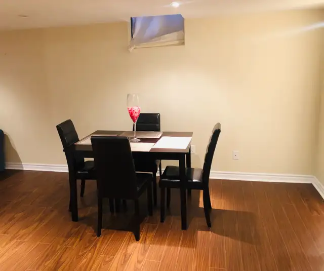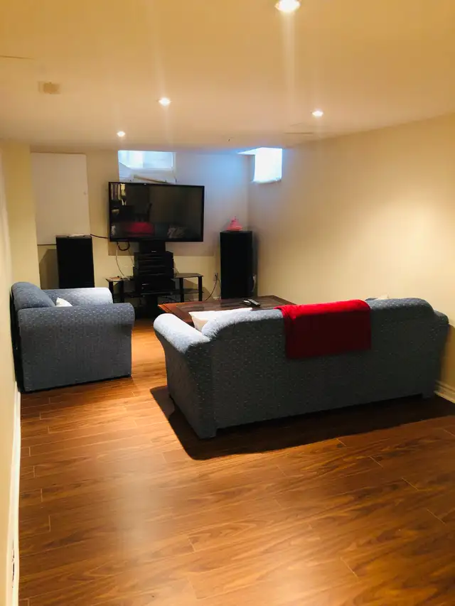 Fully furnished 1 bedroom basement apartment for rent, separate entrance, walk-in closet, spacious and clean, full bathroom with shower. Newly installed pot lights and other updates recently done. Please call to book a viewing appointment. Parking is additional cost (1 car only). Ideal for a single person or a couple. Several parks, schools, stores and transportation near by, 5 mins by car to Go Station and other nice features.
