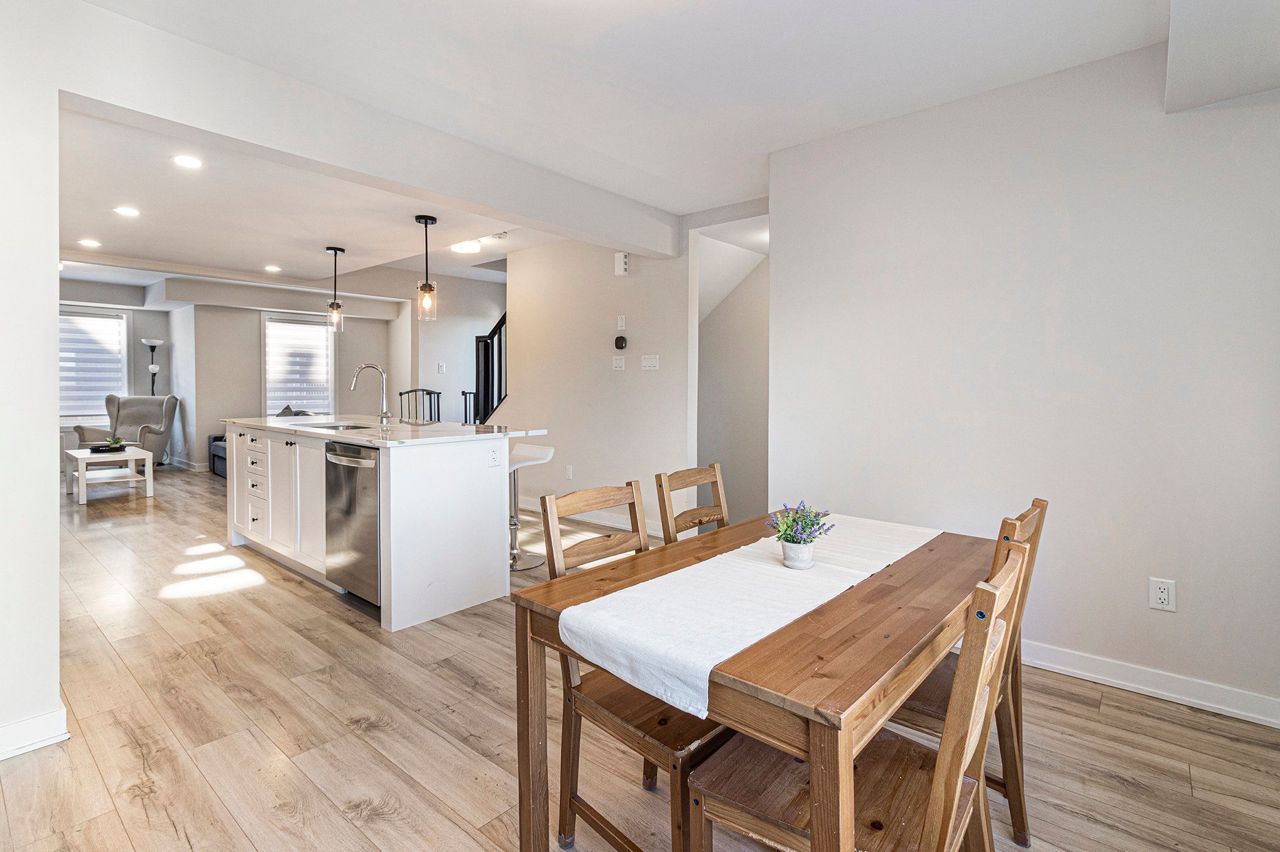 This stunning 2024 Mattamy-built 3-storey Bedford end-unit townhome offers the perfect combination of modern design, comfort, and functionality in a highly desirable west Ottawa location. Over $42.000 design and structural upgrades (such as guest suite). Situated on a premium corner lot, this home stands out with windows on three sides, creating an exceptionally bright and airy living space filled with natural light throughout the day. The ground floor features a versatile guest suite complete with a full bathroom and patio door access to the backyard-a perfect retreat for guests, in-laws, or use as a private home office. The second level showcases an inviting open-concept living and dining area with southwest exposure, providing warm afternoon sunlight and views of a nearby historic building.The modern kitchen is beautifully appointed with quartz countertops, pots and pans drawers, and upgraded cabinetry. Recessed pot lights and a clean white palette give the space a bright, elegant, and contemporary feel. A smart thermostat adds to the home's comfort and energy efficiency.The third floor features a spacious primary bedroom and a private ensuite bathroom, offering a quiet space to unwind. Additional bedrooms are well-sized and designed to maximize comfort and privacy. A convenient laundry area is also located on the upper floor for everyday ease. With two parking spaces (one garage and one exterior driveway), this home offers both practicality and flexibility. Built in 2024, it comes with the remainder of the Tarion Warranty, ensuring peace of mind for years to come.Set on a quiet street in a family-friendly and growing community, residents will enjoy nearby walking paths, green spaces, and parks ideal for outdoor activities. Located just minutes from Highway 417, public transit, top-rated schools, Centrum Shopping Centre, Canadian Tire Centre, and Tanger Outlets, this home combines modern living with exceptional convenience.