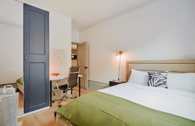 Your private bedroom comes equipped with a double bed (a key selling point—most accommodations offer only single beds!), a full-size desk, wardrobe, bedding, sheets, towels, and under-bed storage space. The apartment features a fully equipped kitchen with all utensils, dishware, cookware, and appliances such as blenders, toasters, and coffee makers. Students can control the electric heating temperature in their private rooms. All members receive a key to the Chelsea front door and a key to their apartment. Each individual room also has its own lock.